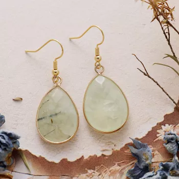 Natural Stone Teardrop Pendant Dangle Earrings - Minimalist Healing Crystal Jewelry