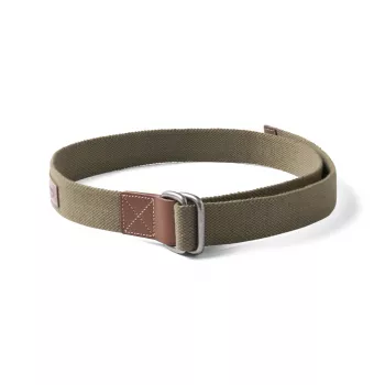 Unisex Braided Canvas Web Belt with Leather Patch & Double Ring Buckle